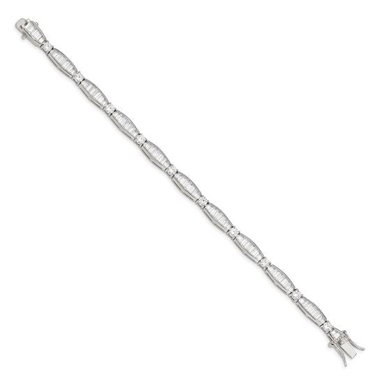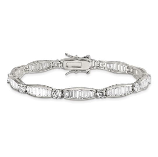 Rhodium-plated Sterling Silver Baguette and Round CZ Bracelet