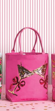 Add a pop of vibrant color to your ensemble with the Hot Pink Cheers Sparkle Tote. This eye-catching tote is crafted from durable cotton canvas and adorned with a dazzling sequin exterior that catches the light beautifully. The sturdy cotton webbing handles ensure comfortable carrying, whether you're heading to the beach, running errands, or enjoying a day out. Inside, the laminated wipe-clean interior makes it easy to keep your essentials organized and tidy. With dimensions of 14 1/2" x 18", this spacious tote offers ample room for all your belongings. The shell is made from 100% jute, providing a natural, eco-friendly touch, while the handles are crafted from 100% cotton for added strength and comfort. Elevate your accessory game with this stylish and functional tote that combines practicality with a touch of glamour.