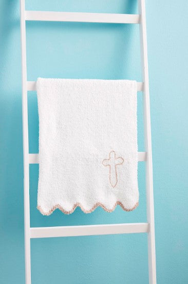 The Scallop Cross Chenille Blanket is a delightful and plush blanket ideal for children. Crafted from premium chenille fabric, it offers a gentle and cozy feel against the skin. With its charming cross design, it adds a gentle reminder of the Lord's love for us to any setting. This lightweight blanket is effortless to carry, making it perfect for naptime at school or cuddling up on the couch at home. Available in a range of vibrant colors, it is sure to be loved by kids. Additionally, it is machine washable, ensuring hassle-free cleaning and upkeep. Treat your child to the utmost comfort and warmth with this adorable blanket.