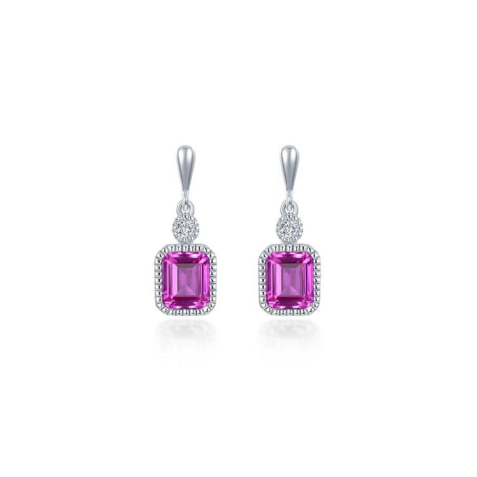 October - Tourmaline. Adorn yourself with Lafonn's birthstone jewelry. Each of these gorgeous earrings features an emerald-cut simulated blue topaz and a Lafonn's signature Lassaire simulated diamond. The earrings are in sterling silver bonded with platinum.