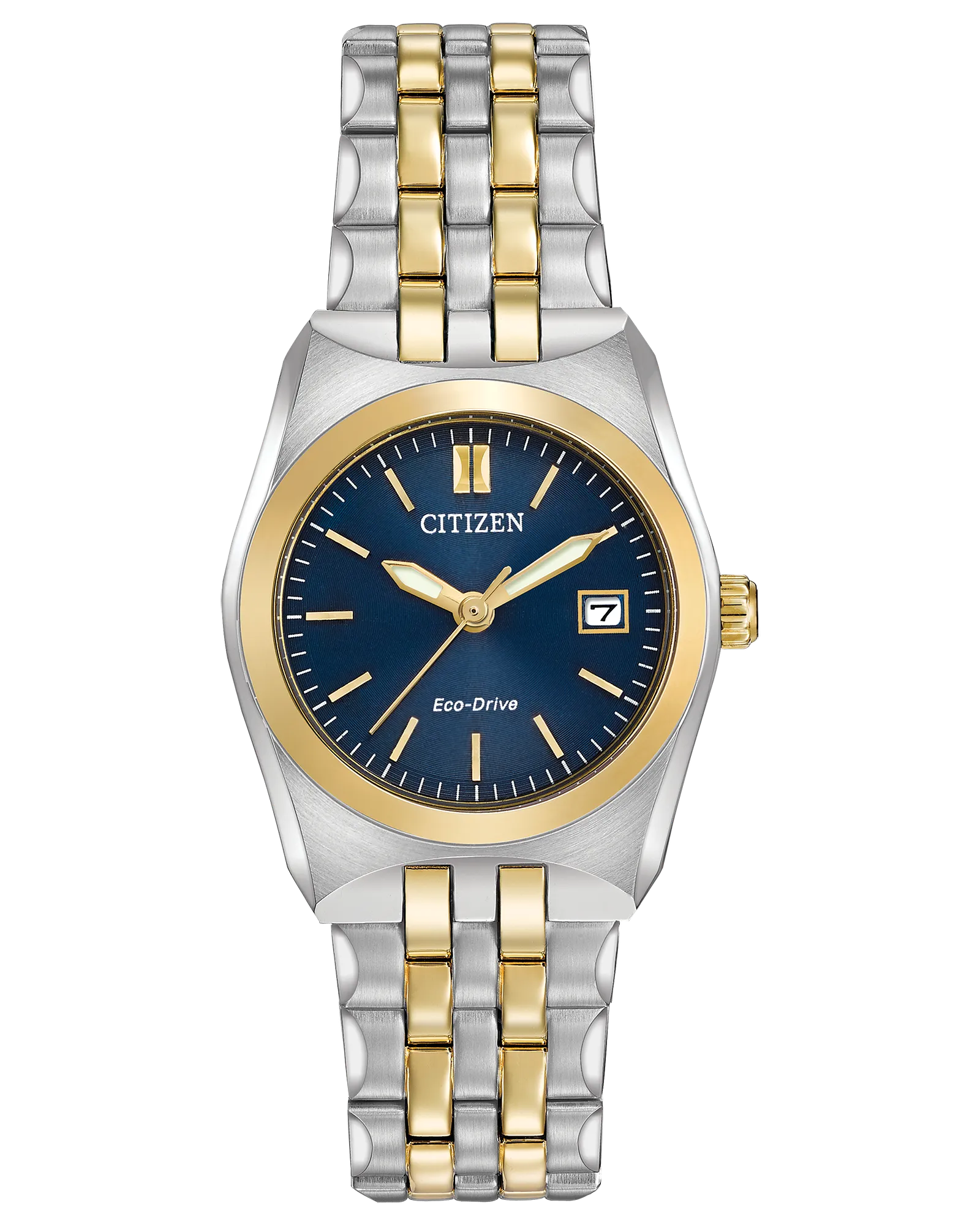Featuring our Eco-Drive technology – powered by light, any light. Never needs a battery. Caliber number E011.