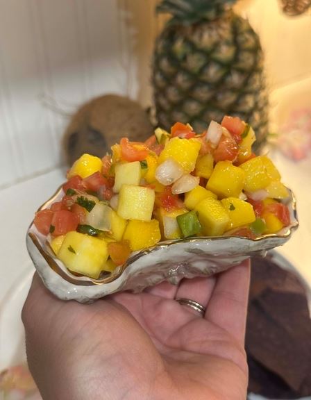 Oyster Tidbit Set. This exquisite set includes two meticulously hand-painted stoneware dishes, each artfully crafted in the shape of an oyster shell. Measuring 3 1/2" x 5", these dishes are perfect for serving small bites, appetizers, or condiments. The durable stoneware material ensures longevity and adds a touch of elegance to any table setting. Ideal for entertaining guests or enhancing your dining experience with a coastal flair, these tidbit dishes combine functionality with artistic design, making them a charming addition to your serveware collection.