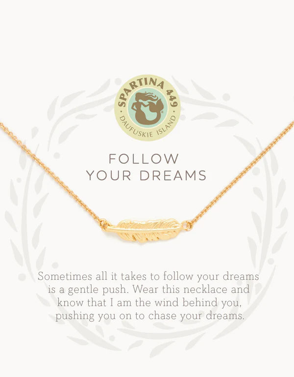 Wear our Follow Your Dreams Necklace as a reminder to chase your dreams. Featuring a feather charm, this special piece comes packaged inside a beautiful box with the message: "Sometimes all it takes to follow your dreams is a gentle push. Wear this necklace and know that I am the wind behind you, pushing you on to chase your dreams."