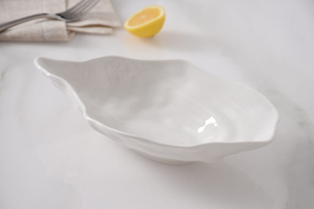 Medium Oyster Bowl. Great for serving seafood favorites like shrimp, seafood salad, steamers or mussels . Or use it for guests to discard their empty clam/mussel shells! Sleek white-toned superior quality melamine. Great for your indoor and outdoor activities. Food safe, freezer safe, dishwasher safe. Easy Care.