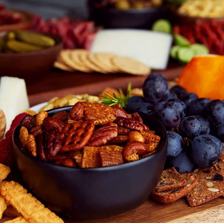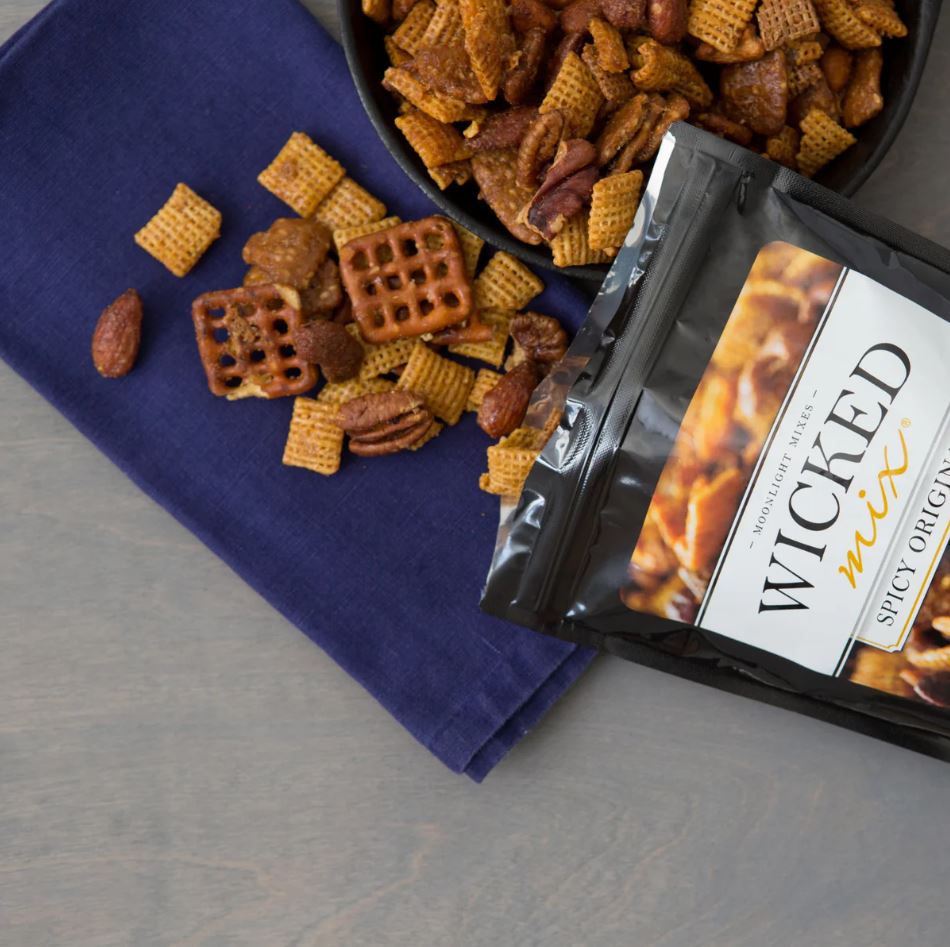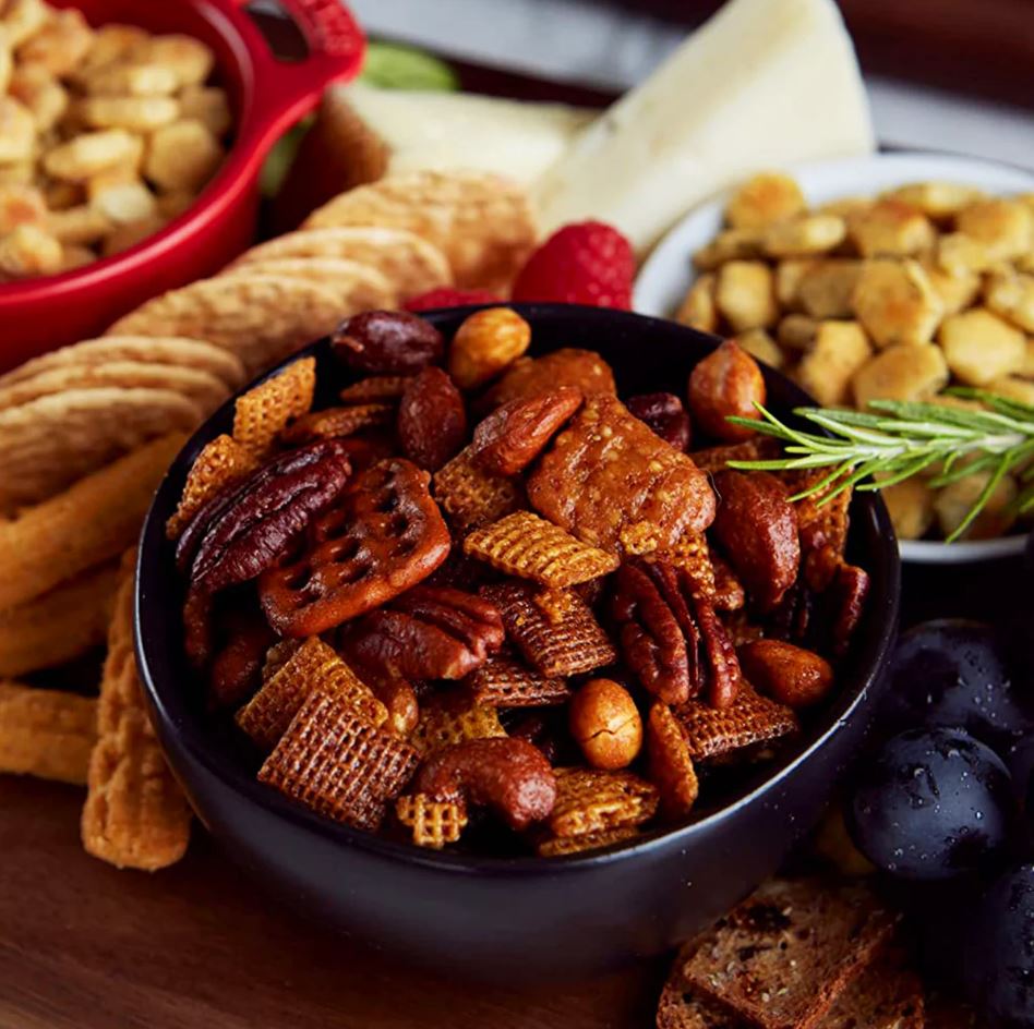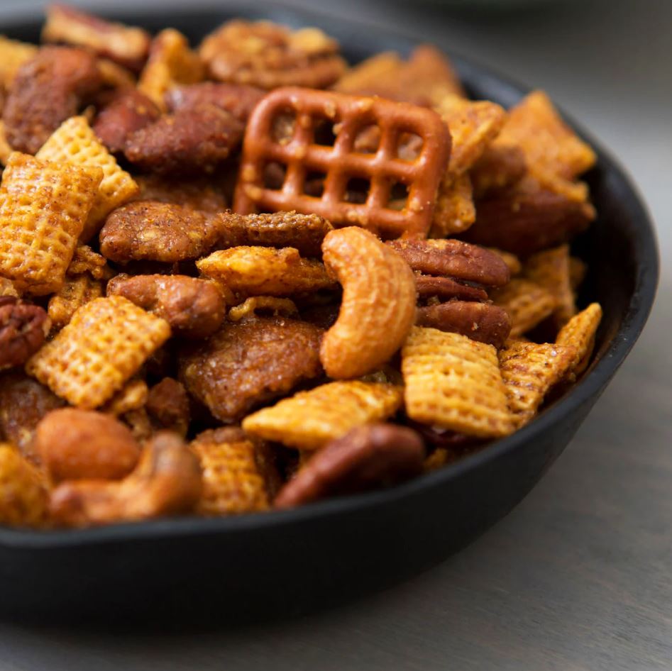 Those 7 components are then spiced with a wicked brew containing spices, some secret, some not, resulting in a tasty snack mix that cannot be adequately described, only experienced…